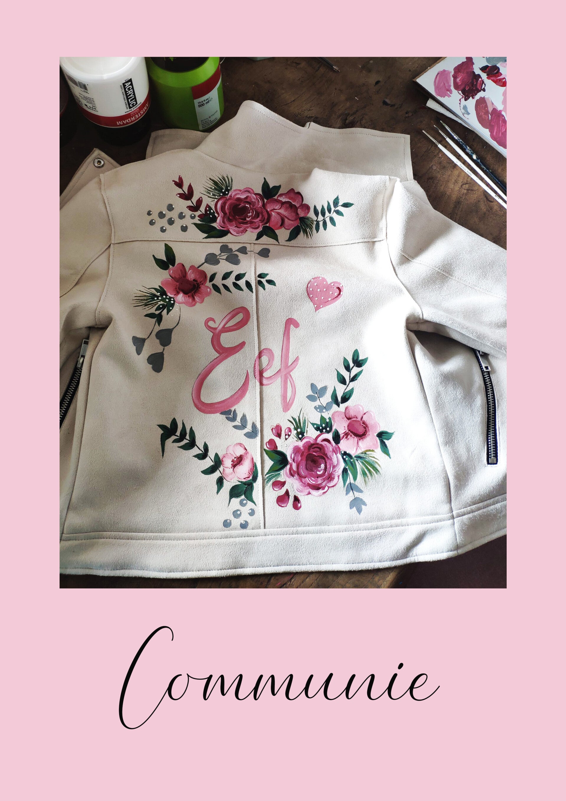 Je levert zelf het jasje aan. Vervolgens bespreken we jouw wensen en ga ik aan de slag met de beschildering. Wil je graag meer informatie over de mogelijkheden, de prijzen, het ontwerpproces of wil je een bestelling plaatsen?